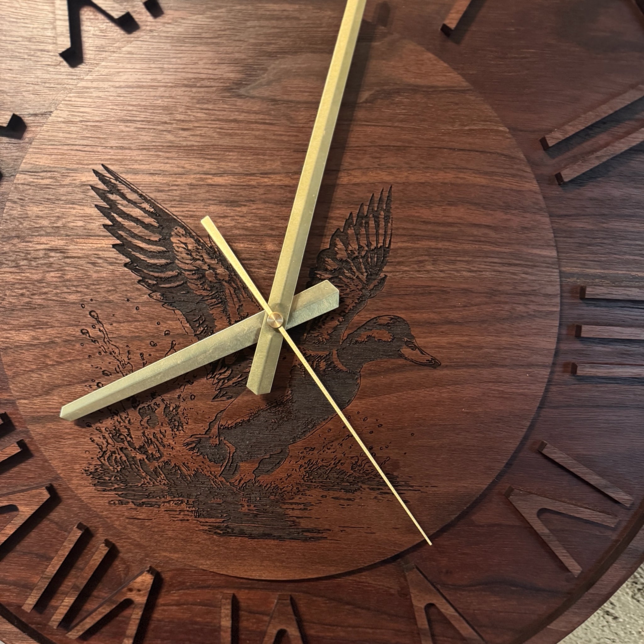 This 17.5" Walnut Wall Clock blends nature-inspired art with classic timekeeping. Precision-cut from rich, kiln-dried walnut, the clock features a finely detailed engraving of a...